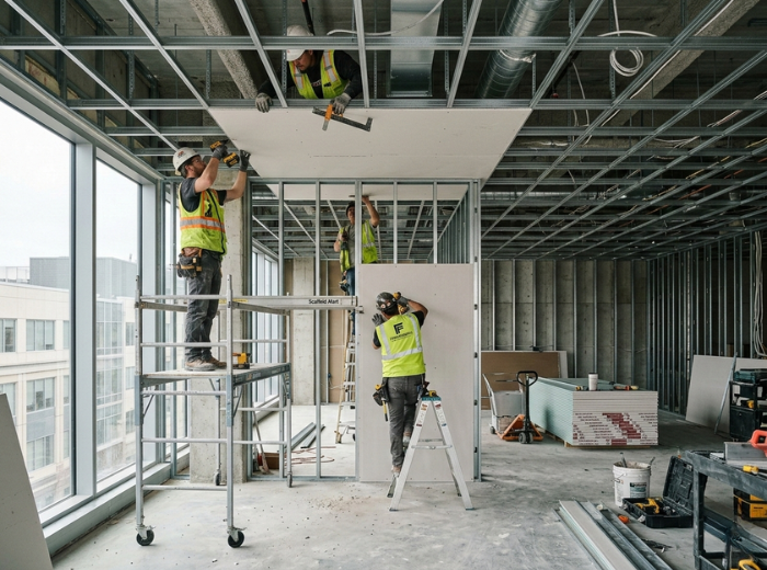 Expert gypsum board installation for ceilings and partitions with smooth, modern finishes.